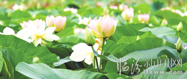 临汾新闻网讯 日前,汾河公园平阳桥下,大片的荷花竞相绽放。