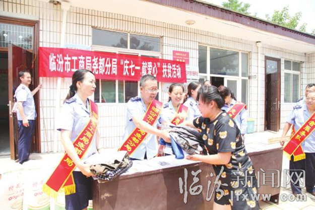 临汾新闻网讯 6月29日,烈日炎炎,市工商局尧都分局部分党员组成“志愿者服务队”奔赴尧都区河底乡西凹村、交口村,向村民们捐献了图书、衣服、面粉等物品,并通过自费购买村民出售的土特产等,将“爱心扶贫”送到了农民朋友的身边。