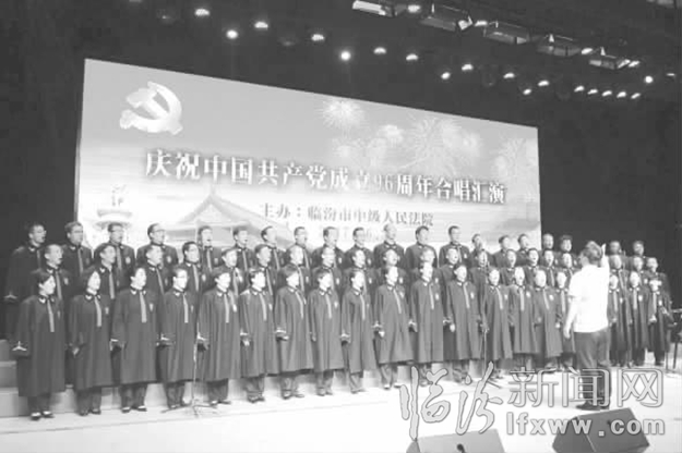 临汾新闻网讯 6月28日,临汾市中级人民法院举行文艺汇演,296名干警和职工组成12个合唱团队放声高歌,庆祝中国共产党成立96周年。