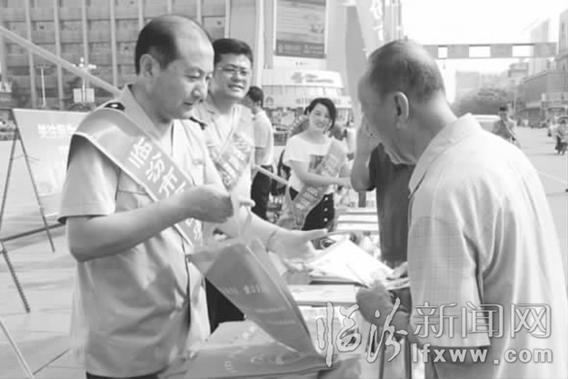 临汾新闻网讯 民以食为天,食以安为先。7月13日,市食品安全委员会办公室、市食品药品监督管理局、市工商局、市质监局等多家单位在平阳广场开展“尚德守法共治共享食品安全”为主题的食品安全宣传周活动。工作人员向过往群众发放食品安全相关的法律法规、食用碘盐注意事项、假冒伪劣商品辨别等各类宣传资料上千份,营造人人关心食品安全的浓厚氛围,促进食品安全共享共治。