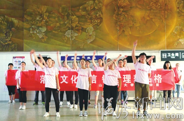 临汾新闻网讯 在山西师范大学大学生暑期“三下乡”的队伍中,有这样一支团队脱颖而出,它就是“文化自信志愿宣讲服务队”。该队以“文化自信夯基础,不忘初心跟党走”为主题,在市区各大广场、公园以及火车站、动车站等地开展文化自信宣讲活动,受到市民们的欢迎。