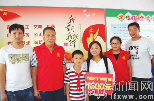 工作人员为该学生送上助学金,鼓励他好好学习,早日成为栋梁之才,回报社会。