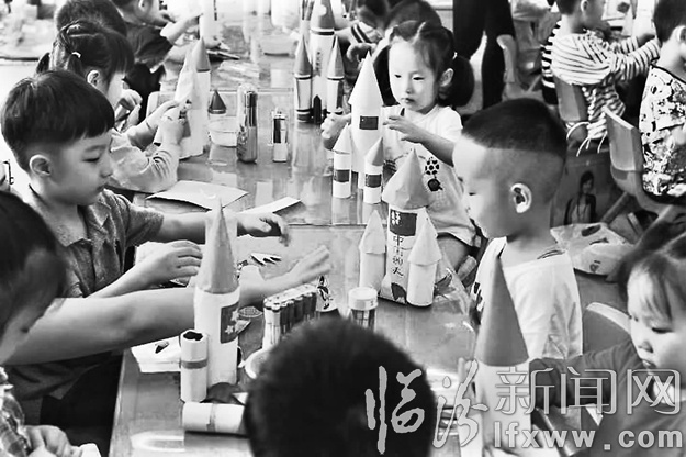 临汾新闻网讯 国庆节到来之际,山西师范大学幼儿园中二班开展了“送给祖国妈妈的生日礼物”亲子手工活动,提高了孩子们的创新动手能力。图为中二班小朋友在展示作品。