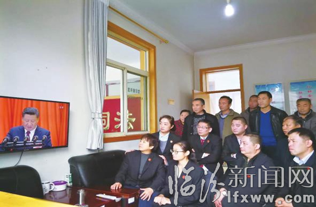 图为洪洞县法院通过专题学习等方式学习十九大报告精神。 通讯员 田亚欣 摄