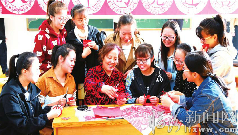 临汾新闻网讯 10月20日,山西师范大学现代文理学院教育系14名大学生在民间剪纸艺术家梁春兰的悉心讲解下,认真学习剪纸技艺,通过剪纸作品表达对伟大的党和祖国的热爱之情。