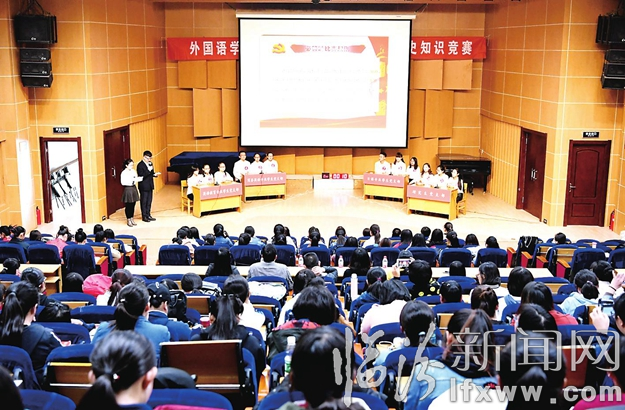 临汾新闻网讯 十月二十六日, 山西师范大学外国语学院举办了“不忘初心 牢记使命”党史知识竞赛,学院领导和全体学生党员及入党积极分子共计三百余人观看了竞赛。本次竞赛让大学生进一步了解了中国共产党的光辉历程和取得的伟大成就,激励大学生们把对党、对祖国的爱转化为光荣感,使命感和责任感,成为努力学习、发展自身的前进动力。