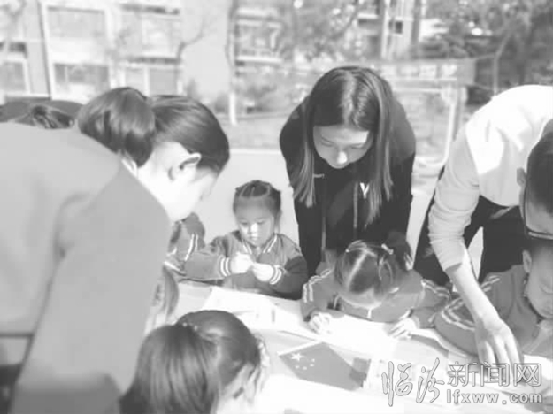 临汾新闻网讯 日前,山西师范大学现代文理学院经济管理系学生党员和学生干部组成青年志愿队,走进临汾艾蒙园幼儿园,开展了以“大手牵小手共筑中国梦”为主题的爱国主义教育活动。此次活动,让小朋友们对党和国家有了一个初始概念,同时也让大学生们坚定了“不忘初心,继续前进”的信心。