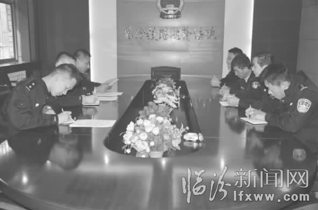 临汾新闻网讯 近日,临汾铁路运输法院司法警察大队组织全体法警深入学习十九大精神,做到集中学与个人学相结合,达到了很好的学习效果,从思想上、行动上促进法警工作上台阶。 李建军摄