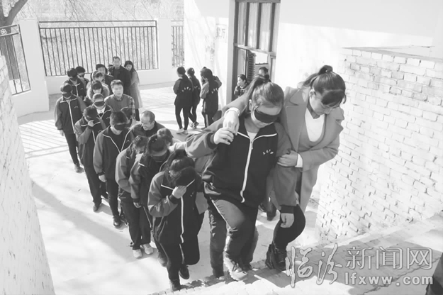 志愿者们通过模拟“人生路”的拓展活动,引导孩子学会感恩父母,用实际行动好好学习,报答父母的养育之恩。 记者郝海军摄