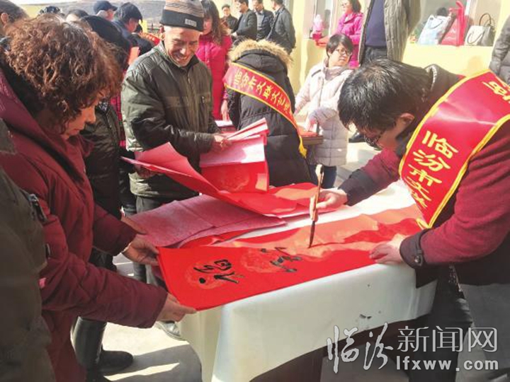 临汾新闻网讯 “狗年祝福四时安,福满人间喜事多”天增岁月人增寿,春满乾坤福满门”……2月1日,天气虽冷,安泽县马壁乡海东村村委会却是一派喜气洋洋的景象。市文联携十余位书法家在此开展“下基层、送春联、送祝福”活动,把温暖和祝福送到百姓心头。