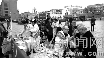 临汾新闻网讯 3月5日,在市区平阳广场,我市同仁眼科医院的医疗服务志愿者在为市民检查视力。当日,该医院结合学雷锋活动纪念日,开展了“关爱家人,爱护视力”广场义诊活动,通过现场咨询、义诊以及发放药品的形式,弘扬雷锋精神,服务临汾市民。