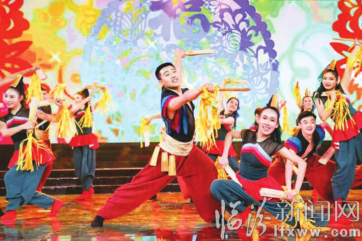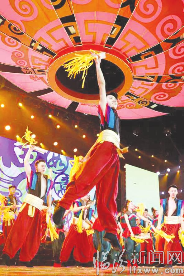第15个上场的临汾板块,把整场演出推向了高潮。以“唐之根、晋之源、霸之国”闻名三晋的翼城文化元素编排的传统舞蹈《翼城浑身板》,展现了临汾厚重的文化底蕴,赢得了观众热烈的掌声和喝彩。