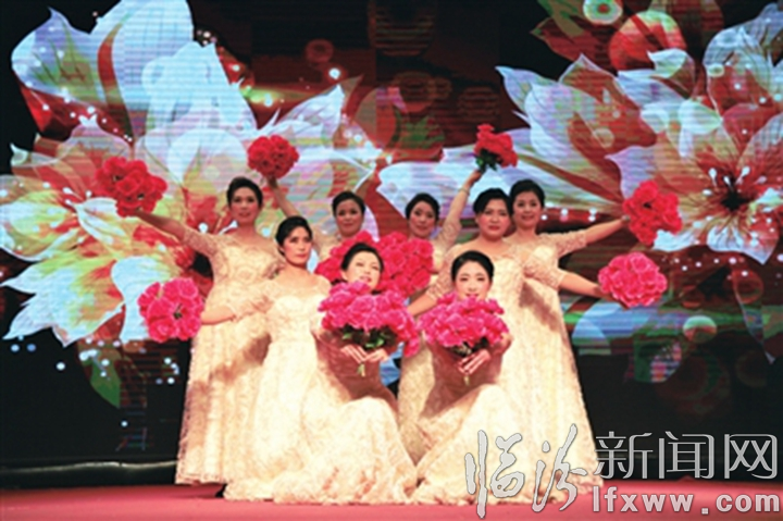 临汾新闻网讯 “三八”国际劳动妇女节来临之际,在翼城县妇联的组织下,各界妇女以各种形式的活动庆祝自己的节日。图为翼城四中的老师们表演节目《女人花》。