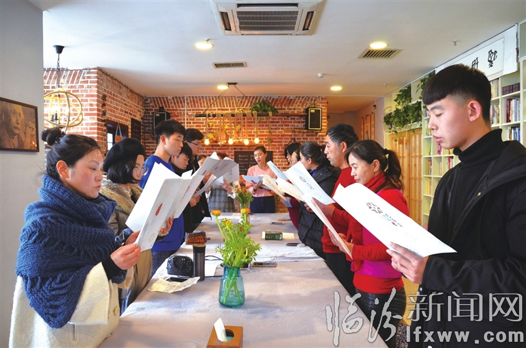 临汾新闻网讯 3月31日,在我市艺善享书苑熙妍堂读书会上,市民在诵读《弟子规》。艺善享书苑熙妍堂读书会本着“共读、共学、共享、共成长”的宗旨,提供读书会公益平台,家长可以在这里共读经典、学习家庭教育常识、分享读书收获和感悟,提升自身素质。