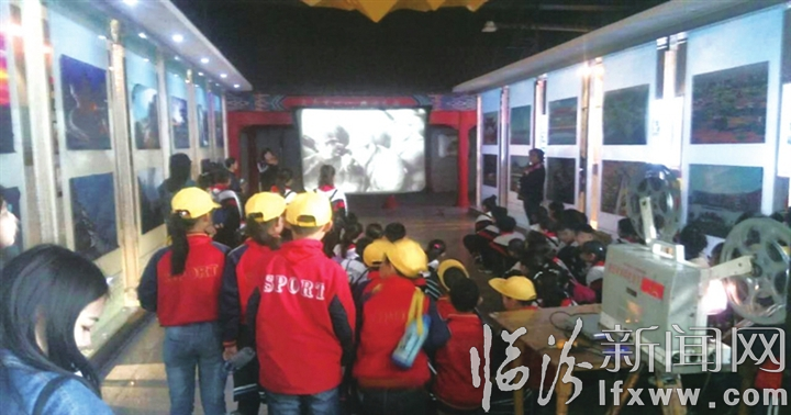 近日,霍州市发挥红色革命老区的资源优势、加强党史遗址保护和爱国主义教育基地建设力度,开展革命传统教育,进一步促进青少年健康成长。图为学生们在该市爱国主义教育示范基地观看爱国主义教育影片。