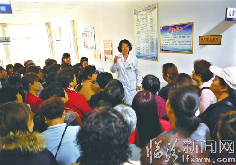 临汾新闻网讯 近日,市第二人民医院组织妇产科、普外科专家,来到临汾市尧都区金殿卫生院进行义诊普查活动。图为妇产科专家为妇女进行宫颈癌、乳腺癌的早期预防、普查及健康知识讲座。(王辉耀)