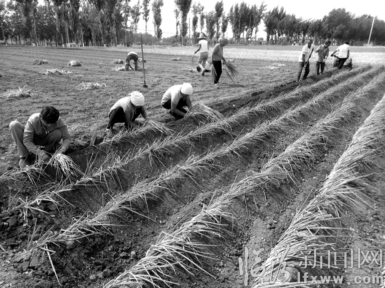近年来,洪洞县大槐树镇秦壁村因地制宜,积极引导村民发展特色产业,大力实施“一村一品”工程,促进农村经济发展,走出了一条农业持续增效、农民持续增收的富民之路。图为近日秦壁村村民正在种植大葱。记者 范韶华 摄