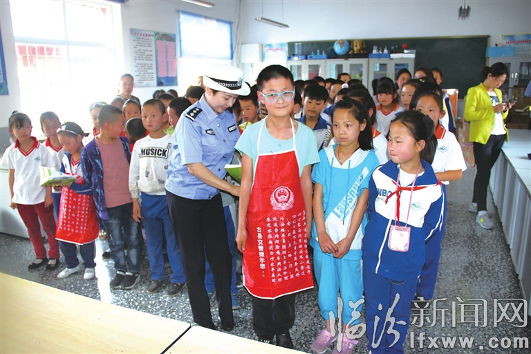 活动中,民警利用学校多媒体播放设备向同学们播放了卡通警示教育片,教育和引导孩子们要牢固树立交通安全意识,增强自我保护能力。现场还向学生们发放了大队制作的安全提示围裙、文明出行温馨提示卡等交通安全宣传品,让学生们在学习和游戏中形成人人学交通安全知识,人人遵守交通法规的良好氛围。(邓丽芳 摄)
