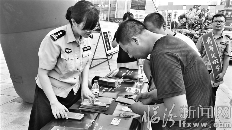 图为市公安局直属分局在市区鼓楼广场开展宣传活动。