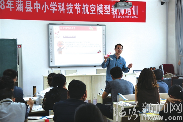 蒲县教育局坚持“普及与提高、课内和课外、学习与实践”三个结合,培养学生的创新精神和实践能力。图为专家培训科技教师的情景。(申佳佳 摄)