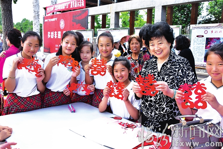 近日,霍州市开展了以“多彩非遗,美好生活”为主题的宣传活动。图为山西民间非物质文化遗产杰出传承人、临汾市剪纸艺术协会副会长、霍州市剪纸艺术协会会长陈玉萍教学生剪纸。记者 范韶华 摄
