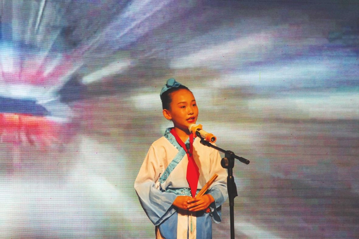“日出而作,日入而息。凿井而饮,耕田而食。帝力于我何有哉!”舞台之上,小选手盖宥西轻声吟唱着中国最早诗歌《击壤歌》,将观众带入远古先民的生活情境中。她从忆华夏出发,追溯最早中国的起源,感受古色古香古临汾。同时聆听水声鼓声戏曲声,声声奏出民族魂。再看新临汾,日新月异且处处透着时代美。
