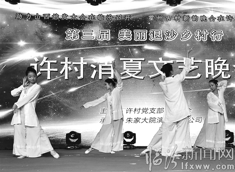 近日,霍州市退沙街道第三届“美丽退沙行·许村消夏文艺晚会”在许村文化广场上演。近年来,许村以农村文化为切入点,先后建设了许村文化健身广场、丰乐亭、文昌塔、农民休闲公园,打造了民俗文化一条街,引导支持村民成立了篮球队、威风锣鼓队、八蜡庙表演队、秧歌队、广场舞蹈队等文体团队,经常性开展文体活动,群众文化生活日臻丰富。记者 范韶华 摄