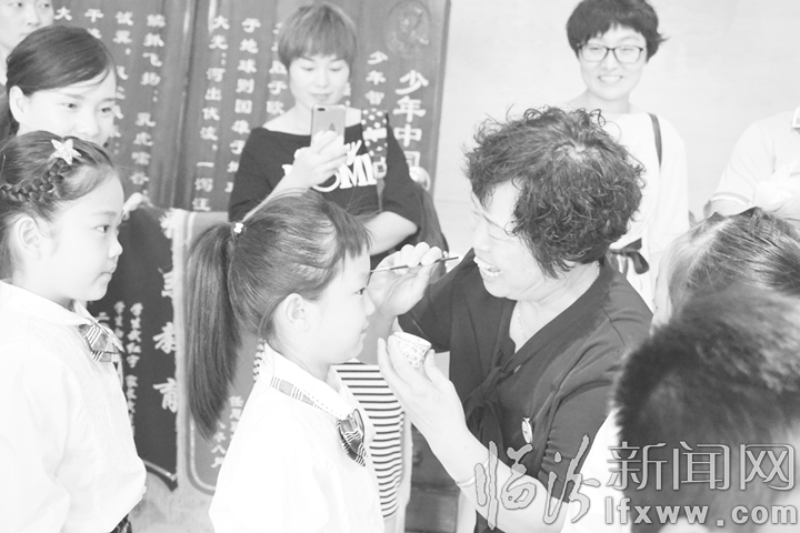 随后,学生们还接受了传统的“朱砂启智”环节。在古代,点朱砂痣,又称“开天眼”,意为开启智慧。祝愿每一名升入小学的小学生可以从此眼明心亮,好读书,读好书,成为一个有智慧的人。