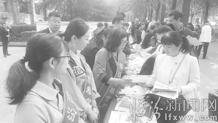 临汾新闻网讯 10月16日,第38个世界粮食日之际,市粮食局在解放路设立了宣传点,向过往市民发放宣传单,宣讲粮食安全,并现场教大家如何辨别粮食的好坏。
