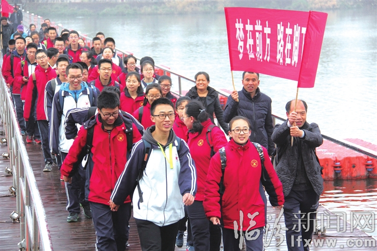 11月17日,临汾一中举办了以“励志、挑战、必赢”为主题的高三年级28华里远足活动。高三全体同学、老师及自愿加入的家长共计3000余人步伐坚定,欢声笑语,用脚步丈量坚韧的距离,用意志谱写青春的辉煌。全程彩旗飘飘,条幅飞舞,让这次远足活动成为一道靓丽风景。记者 郑轲 摄