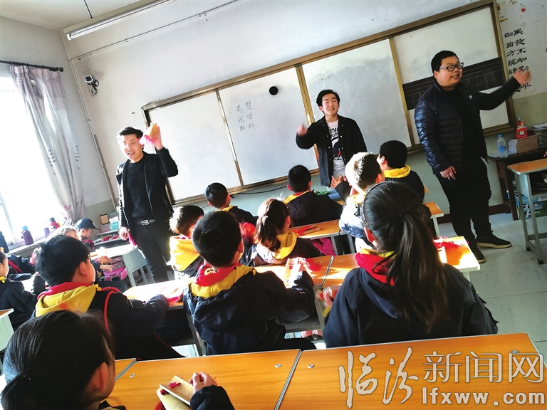 为了给学生构建一个幸福乐园,尧都区解放路小学联合家长开展了“家长进课堂,一班一特色”活动。即由家长当一次老师,给学生上一堂特色课。图为家长给学生上快板课的情景。记者 郭璞 摄