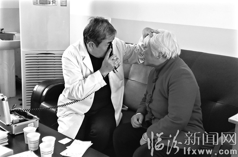 日前,在乡宁县西坡镇卫生所,临汾同仁眼科医院的医务人员在为村民检查眼睛。连日来,市卫生与计划生育委员会联合临汾同仁眼科医院和乡宁县西坡镇政府,开展了“爱心助力,精准扶贫光明行”爱心义诊活动,通过筛查眼部疾病、建立健康档案以及为村民送去慰问品等活动,让山区老百姓在家门口就享受到一流的医疗健康服务。记者 闫锐鹏 摄