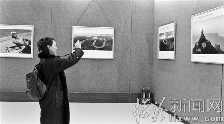 临汾新闻网讯 日前,“中国龙 乾坤湾”国际摄影大赛获奖作品在市文旅艺术馆开展。此次摄影大赛推动了“中国龙 乾坤湾”文化旅游产业的深度融合,为永和县文化旅游产业起到了良好的宣传作用。图为参观者在拍照。