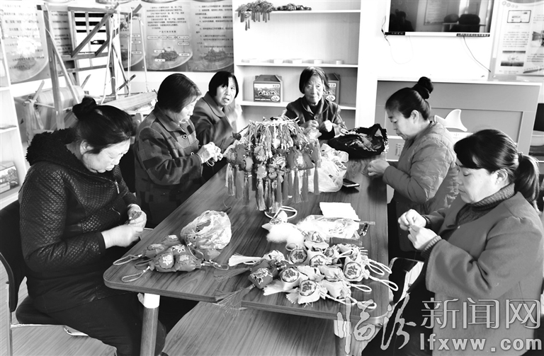 锦绣东征手工艺合作社与运城一家手工艺品企业签订长期供销合同,通过来料加工赚取加工费和自主设计特色纪念品赚取加工费、销售赚取利润两种合作形式,共吸纳农户40户,其中贫困户28户,以传统手工业带动扶贫攻坚。记者 苏亚兵 摄
