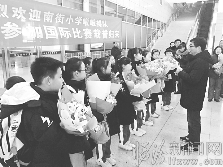 临汾新闻网讯 “孩子们为国争光,太棒了!”12月12日傍晚,临汾西站出站口上演了激动人心的一幕,等待许久的老师和家长们为凯旋的临汾市南街小学啦啦操代表队献上花环和捧花。受国家体育总局啦啦操委员会委派,该代表队赴日本参加2018日本啦啦操国际公开赛,一举夺得儿童组集体街舞第二名、儿童组一级集体技巧第六名的好成绩。