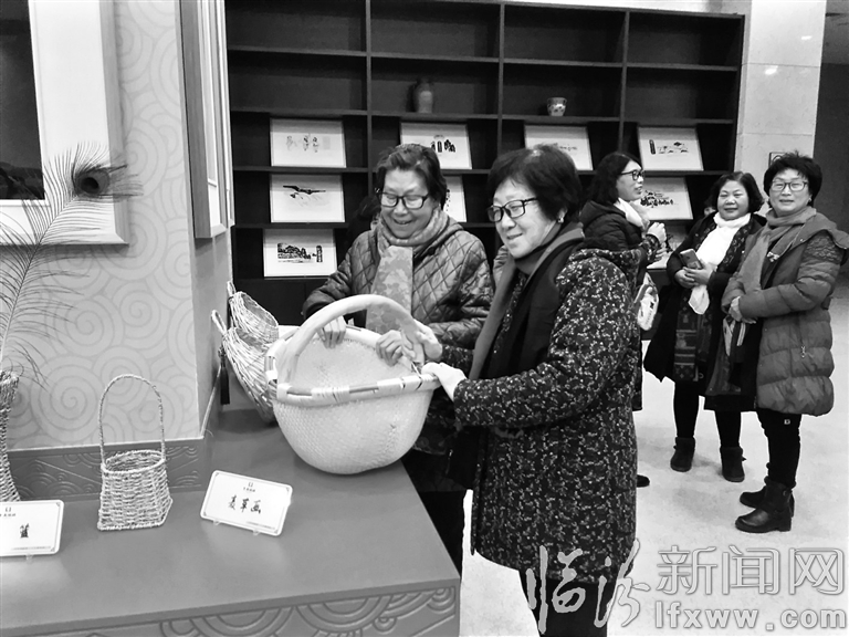 日前,在市委老干部局举办的“迎元旦草编展”现场,襄汾县羽毛画团队4名队员用玉米皮草编粘贴的作品《华门》受到临汾17个县(市、区)的能工巧匠们的肯定,荣获优秀团队大奖。图为羽毛画团队的队员用玉米皮现场创作的情景。记者 刘晚 摄