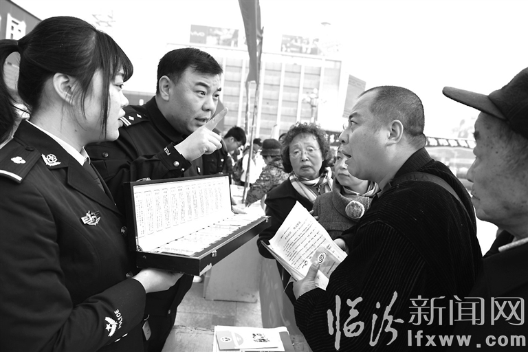近日,在我市平阳广场,临汾市公安局直属分局禁毒大队的民警在为市民讲解毒品的种类。连日来,临汾市公安局直属分局禁毒大队开展了“远离毒品,珍爱生命”主题宣传活动,通过进广场、社区、学校等地,以设立现场咨询台,摆放禁毒展板和仿真毒品模型、派发禁毒宣传单等方式,引导市民远离毒品,积极参与到全民禁毒的队伍中来。记者 闫锐鹏 摄