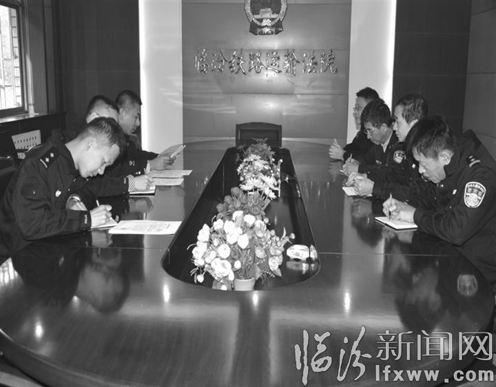 临汾新闻网讯 在创建学习型机关中,临汾铁路运输法院司法警察大队加强政治理论学习与业务学习,坚持集中学与个人学相结合,提升了学习效果。图为近日该院法警在进行集中学习。