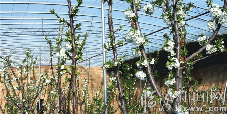 元旦前后,寒风凛冽,但在隰县“红樱桃”开发有限公司桑梓村基地樱桃大棚里,樱桃花已竞相怒放,一派春光,为节日增添了喜庆的色彩。据了解,桑梓村的大棚“红樱桃”,大约正月十五前后即可采摘上市。近年来,隰县桑梓村依托紧依209国道的交通优势,大力发展设施农业,大面积推广大棚瓜菜项目。按照该村的发展规划,到2020年实现川面千座瓜菜棚、垣面玉露香梨全覆盖,达到人均一座棚、户均三亩园、收入三万元的目标。郝微微 摄