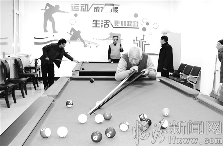 临汾新闻网讯 市老干部活动中心是集学习、休闲、娱乐、健身于一体的学习活动阵地,它已成为老干部的求知堂、长寿园和精神家园。图为一月十七日,离退休干部在该中心台球室打台球娱乐。