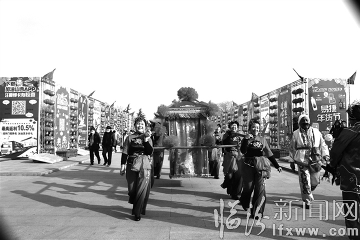 图为群众在尧庙风景旅游区进行传统民俗表演。