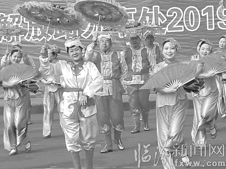 图为国家级非遗项目“伞头秧歌”表演。(董文达)