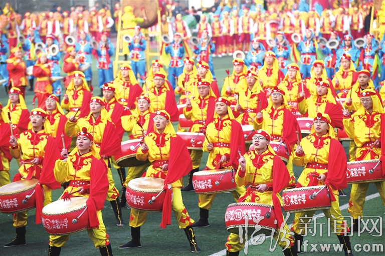 临汾新闻网讯 敲锣鼓、舞龙狮、踩高跷、扭秧歌、跑旱船……2月23日,农历正月十九,临汾市同盛实验中学用一场3000余名学生参演的“闹春”活动,使民间社火这种传统庆典狂欢形式呈现了新气象。