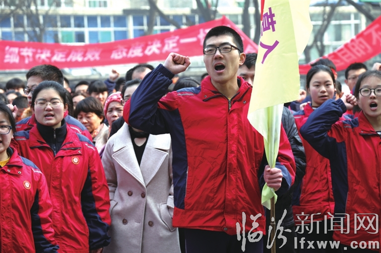 2月22日,山西师大实验中学举行了2019年高三百日誓师大会。在校领导、全体老师和家长的共同见证下,即将面临高考检验的高三学子用饱满的热情发出了备战高考的“最强音”。韩园园摄