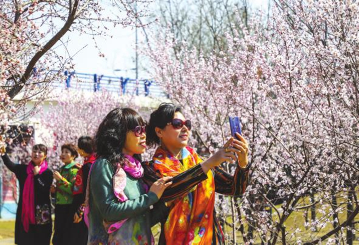 临汾新闻网讯 春到平阳,万紫千红花怒放,真是踏春好时节。3月14日,随着气温回升,我市汾河公园的山桃花、梅花、迎春花争相开放,柳树吐出了嫩绿的叶芽,外出踏春的游人穿行在花丛间,构成一幅幅美丽的春日画卷。