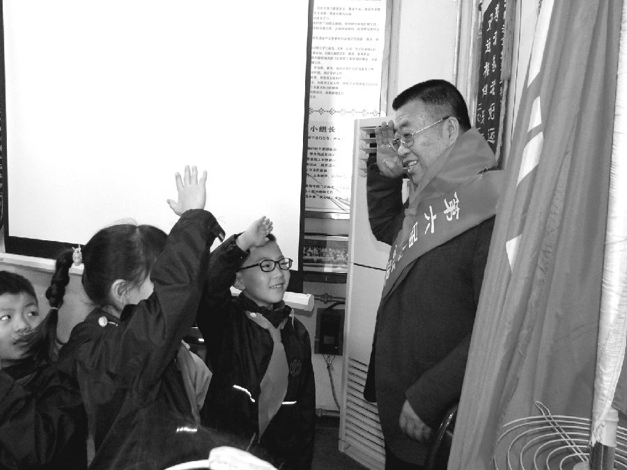 当天上午,同学们见到刘志东爷爷后非常高兴,两名少先队员给刘志东佩戴红领巾,行少先队队礼,从军多年的刘志东向孩子们回军礼,现场气氛热烈。刘志东身披印有荣誉的红色彩带,向孩子们讲述了爷爷、姥爷亲身经历的革命故事,并通过照片、文字等资料,向孩子们介绍红军长征路上经历的磨砺和困难,教育孩子们要牢记先辈们付出的心血和汗水,珍惜今天来之不易的幸福生活,勤奋学习,以优异的成绩回报家长和老师,将来为国家的繁荣昌盛作出自己的贡献。