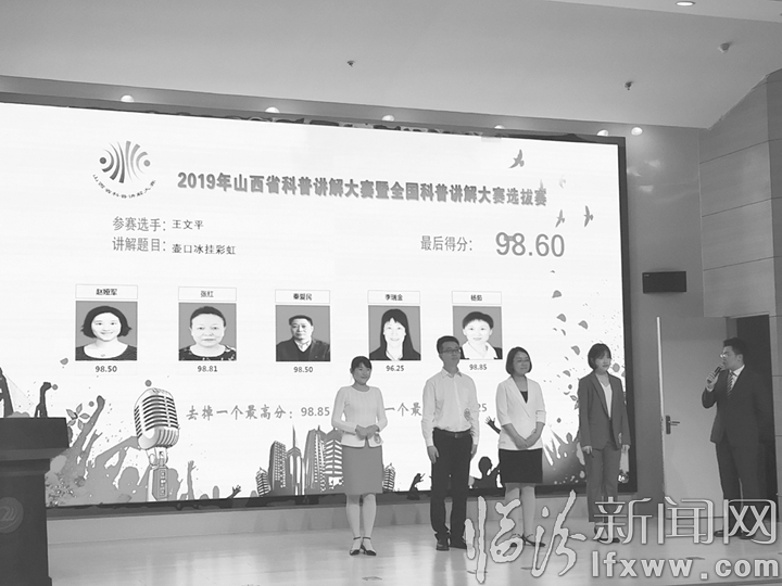 临汾新闻网讯(记者 郝海军)5月19日,由山西省科学技术厅、山西省科学技术协会主办,山西科技新闻出版传媒集团承办的“2019年山西省科普讲解大赛暨全国科普讲解大赛选拔赛”落下帷幕,临汾市气象局选手王文平获得了一等奖,同时侯马市气象局选手王建敏也发挥出色获得了比赛二等奖,二人均获得“2019年山西省十佳讲解员”称号。随后,王文平将代表山西省参加2019年全国科普讲解大赛。