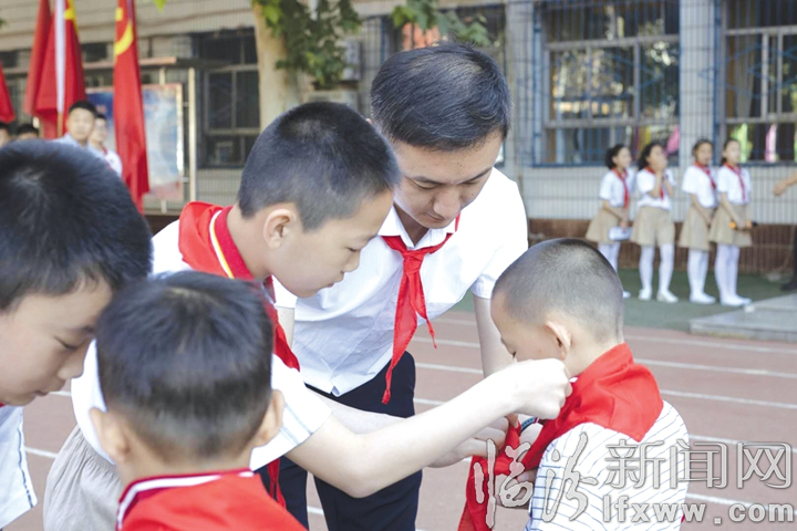 校长王华强向新队员表示祝贺并提出希望和要求:他希望大家继承和发扬少先队的光荣传统,争做新时代优秀少先队员,要好好学习,好好锻炼,时刻以少先队员的标准严格要求自己,在少先队组织中历练,为胸前的红领巾增光,要自学、自理、自护、自强、自律,不断提高自己,完善自己,从小做起,从每一件事情做起,在学校里做一个好学生,在家庭中做一个好孩子,在社会上做一个好少年,努力做到德、智、体、美、劳全面发展,成为新世纪社会主义事业合格的建设者和接班人,今天当幸福的中国儿童,明天成为祖国的建设者,共同为伟大的祖国贡献力量。
