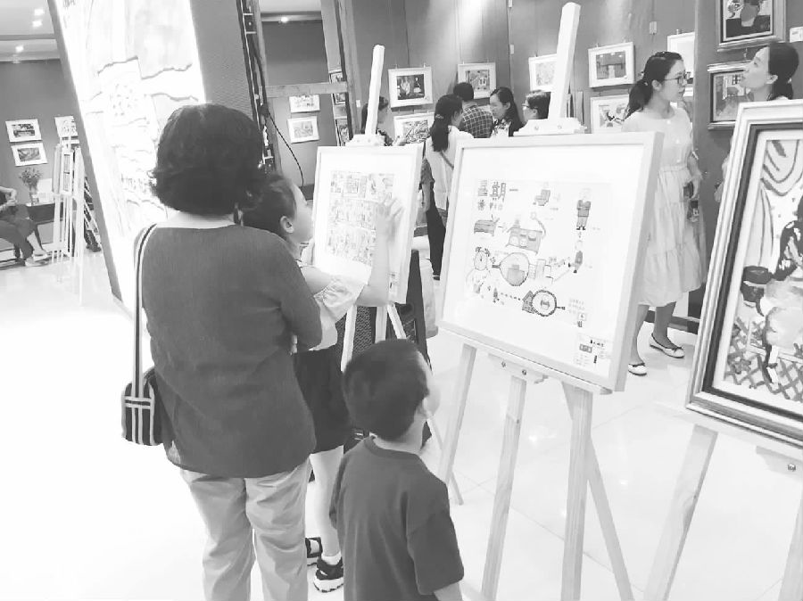 别出心裁的创意,独一无二的设计,近200幅原创艺术作品将展厅装点得多姿多彩、充满活力。徜徉于五彩缤纷的艺术海洋,驻足于一幅幅充满童趣的作品前,前来观展的家长和孩子们赞叹不已。