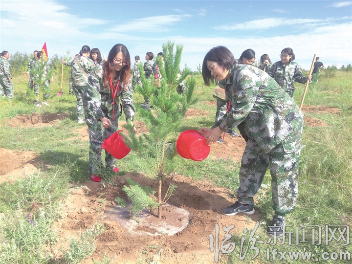 图为参加培训的学员们在参加植树活动。